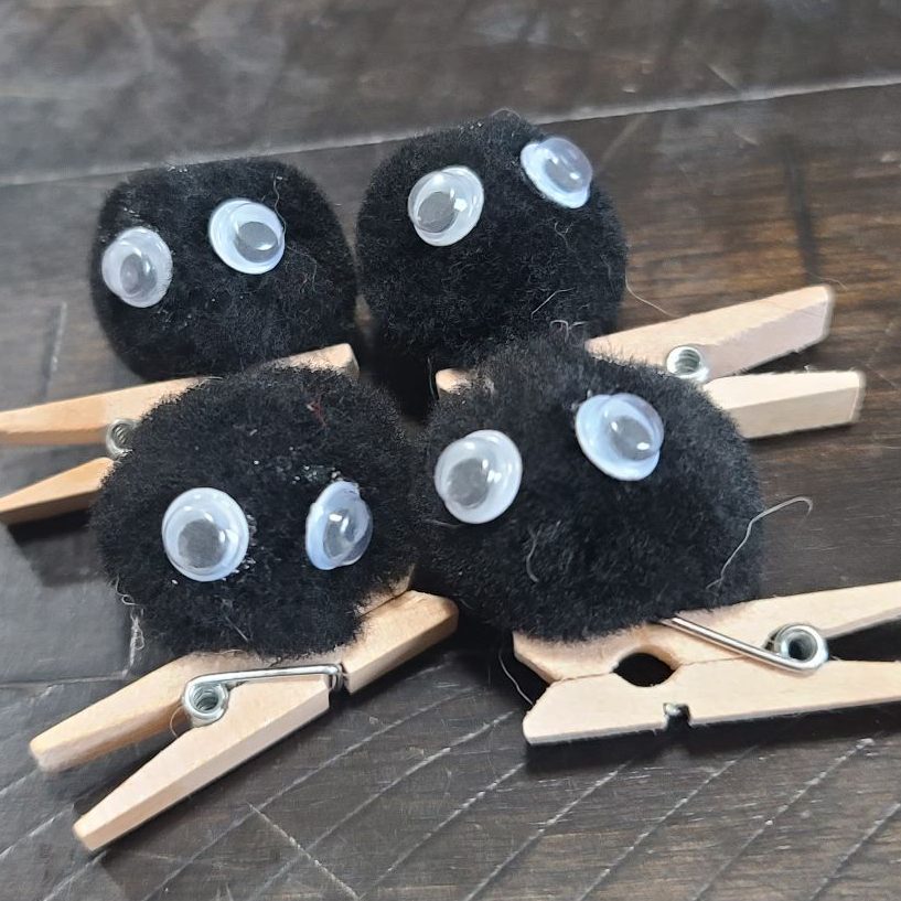For example I made these little soot sprites to clip on people at festivals. This was a nice easy craft that involved simply gluing the googly eyes on to some pom-poms and clothes pins. It was a great way to keep my hands busy and the end results turned out super cute!