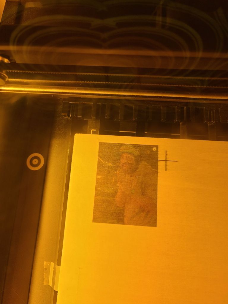 Speaking of my M1 Ultra, I began messing around with the print head option. It doesn’t seem to do too well with detail, especially on wood. However testing this out has helped me realize two things. The first is that the images will come out with a water color effect to them when printing on wood. The second was that I need to still be cautious of the colors that I am attempting to cut through even though it is on wood. My blue diode light laser will not cut through blue colors, however I feel with multiple passes I would be able to get closer to cutting through than on other materials.